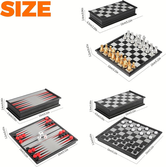 Chess Board Game Set Mini Magnetic Chess Kit Table Game with Folding Case 5'' Portable 3 in 1 Chess Checkers Backgammon Set Travel Game 2 Players