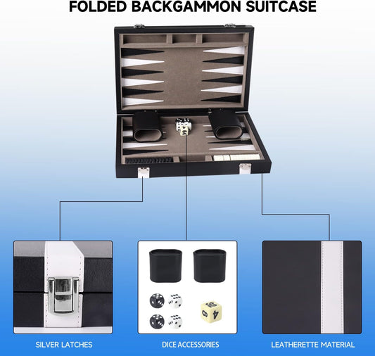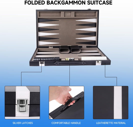 15inch Backgammon Set Classic Folding Board with Leather Case, Portable Travel Game, Ideal Gift Package for Strategy Lovers