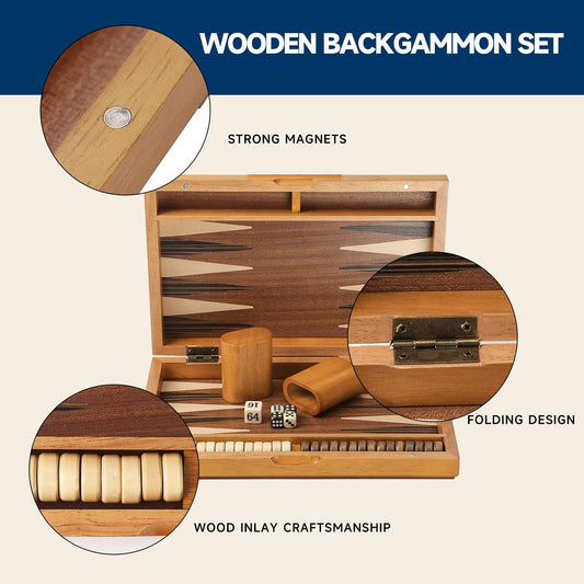 GSE Games & Sports Expert Premium Magnetic Wooden Folding Inlay Backgammon Board Game Set, Portable Travel Board Game (Focus- 11 Inches)
