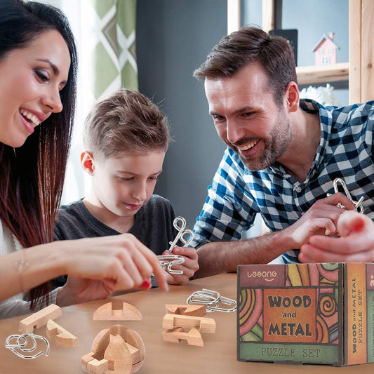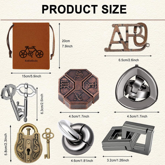 9pcs Puzzles Bulk Gift for Kids, Teens, and Adults Retro Wooden and Metal Unlock Interlock Brain Teaser Toys.