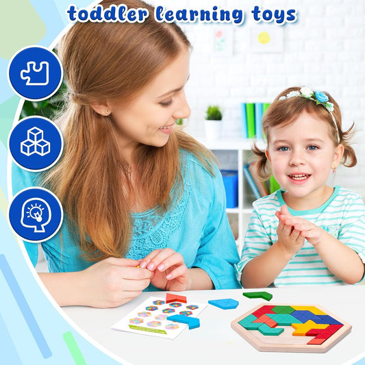 3 otters Wooden Puzzles for Kids, Educational Brain Teaser Game, Shape Sorting Board with Guide Book, Montessori Learning Toys