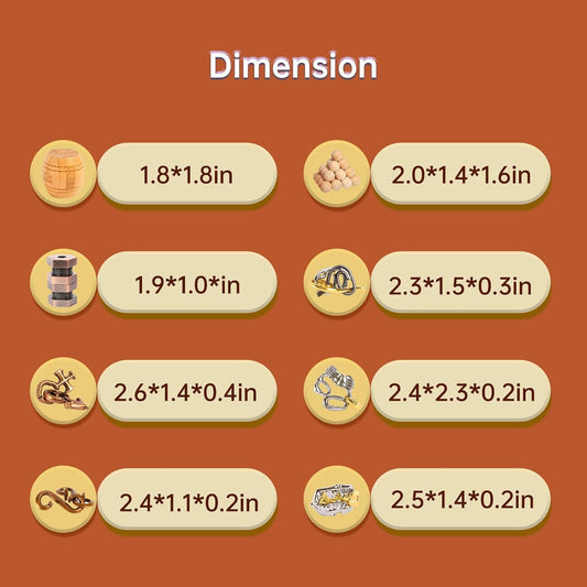 8 Pcs Brain Teaser Puzzles Favor Educational Toys Mind Puzzles Ancient Wooden and Metal 3D Unlock Interlock IQ Puzzles Box Game