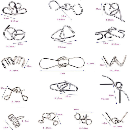 Ahyuan 15 Pieces IQ Test Mind Game Toys IQ Toys Brain Teaser Metal Wire Puzzles Magic Trick Toy Metal IQ Puzzle for Kids and Adults