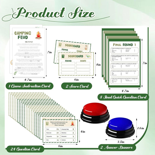 30 Pcs Camping Friendly Feud Game Set Camping Party Game Trivia Quiz with 18 Card 2 Buzzer for Adults Family Games Activities Party Supplies, Battery Not Included