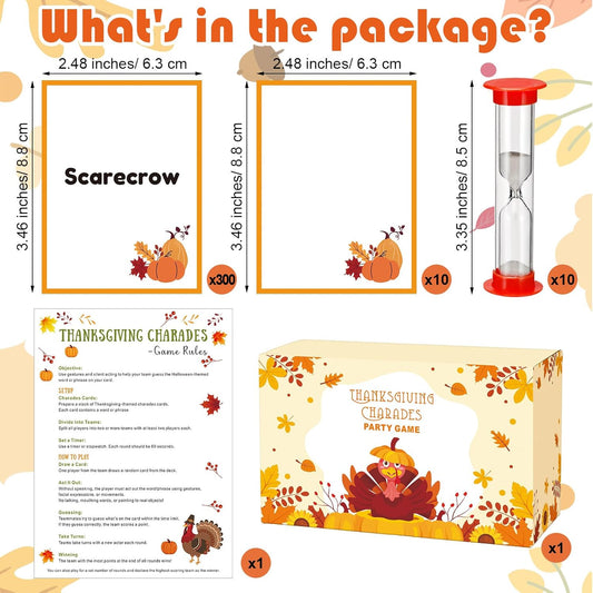 Yexiya Thanksgiving Charades Game for Family Party - 310 Cards with 1 Min Sand Timer & Blank Cards Turkey Day Family Game for Adults Groups