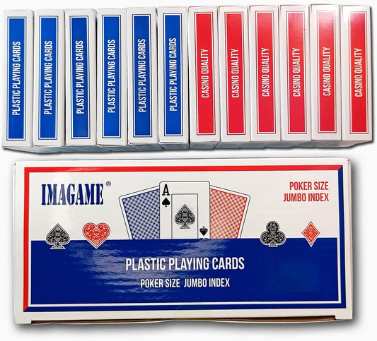 Plastic Playing Cards, Poker Size, Excellent Quality, Jumbo Index, Waterproof & Washable, Perfect for Texas Hold’em Poker, 6 Blue Deck & 6 Red Deck