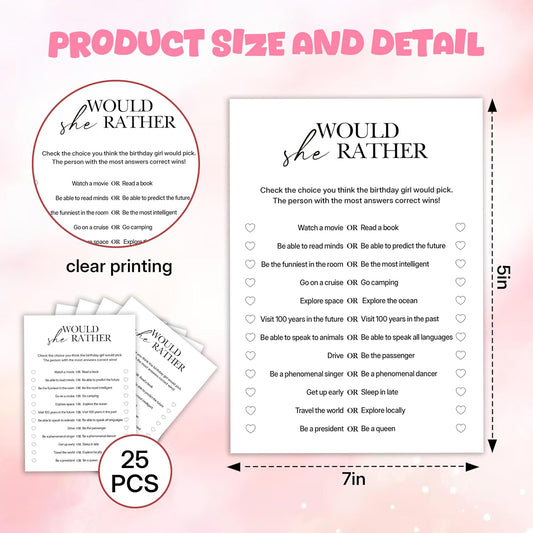 Birthday Party Games, Would She Rather, 25 Pcs Card Set for Guests, Fun Birthday Game for Teen Adults – A04