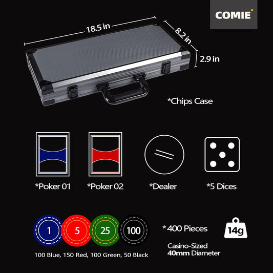Poker Chips,500PCS Poker Chip Set with Aluminum Travel Case,11.5 Gram Poker Set for Texas Holdem Blackjack Gambling