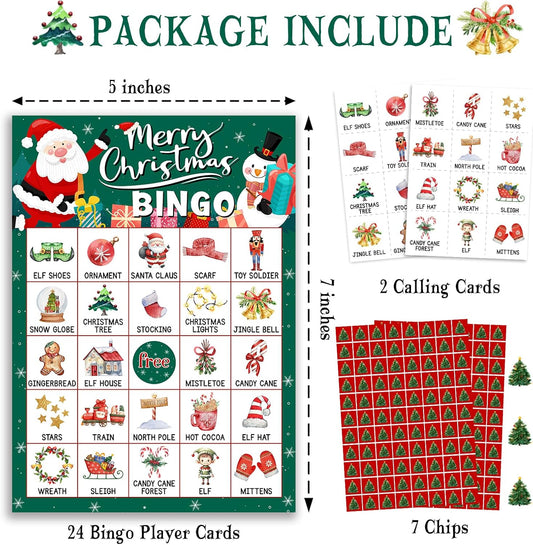 Christmas Bingo Game Cards, 24 Players Christmas Bingo Game for Teens Adults, Xmas Games Supplies for Family Outdoors Xmas Party Favors Supplies Decorations
