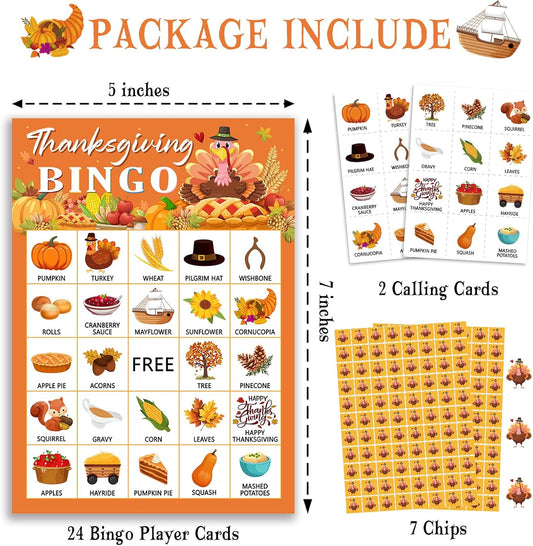 Thanksgiving Bingo Game Cards, Autumn Party Games, 24 Players Thanksgiving Bingo Games for Teens Adults, Thanksgivings Game Supplies for Family Classroom