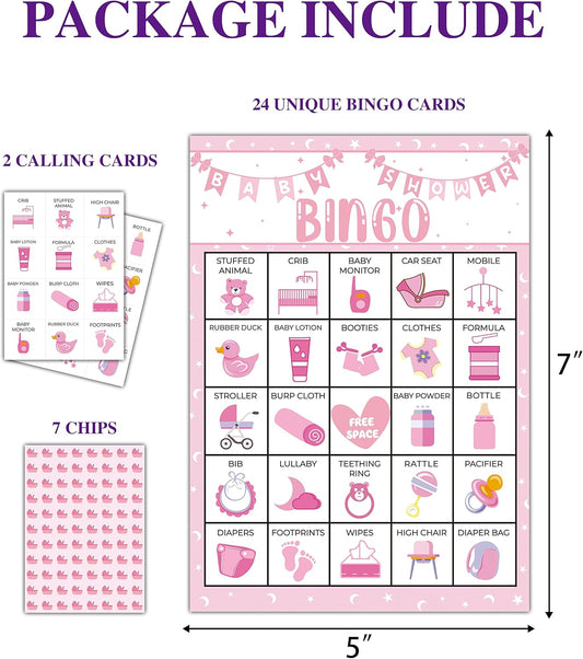 Pink Shower Party Bingo Cards, Shower Bingo Game, Shower Party Games for Adults, Gender Reveal Party Games Favors Supplies Decorations, 24 Players Bingo Game (A03)