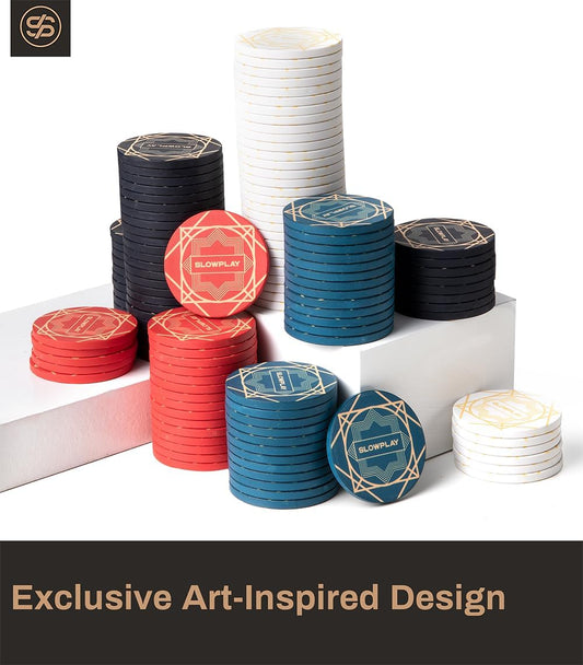 SLOWPLAY Nash Ceramic Poker Chips in Bulk, Casino Grade Ceramic 12-Gram Poker Chip for Texas Hold'em, 43mm Professional Chips Pack of 50 with Denomination of 100