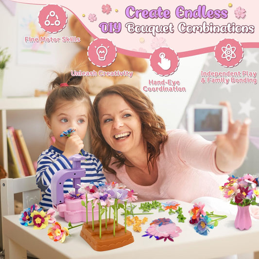 Fabric Flower Bouquets Toys, DIY Arts and Crafts Toys for Kids 4-8, Making Kit Build Own Bouquet, DIY Educational Activities Flower Making Kit Toys for Toddlers, Birthday Gifts for Girls