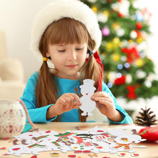 Fennoral 12 Pack Snowman Craft Kits for Kids Make You Own Snowman Foam Stickers Ornament DIY Christmas Arts and Crafts for Chirstmas Party Supplies Winter Christmas Tree Decoration