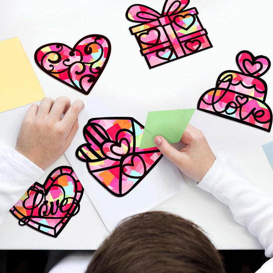 Renbuzhu 40PCS Valentines Day Crafts: Paper Heart Suncatchers, Valentine's Classroom DIY Kits, Window Stained Glass Effect Art Supplies