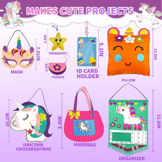 DUOROUBAO 8-in-1 Sewing Kit for Kids, Unicorn Kids Sewing Kits for Ages 5-10 Girls Beginner Easy to Do Craft Kits No Mess with Full Instructions My First Sewing Kit Birthday Christmas Gift for Girl