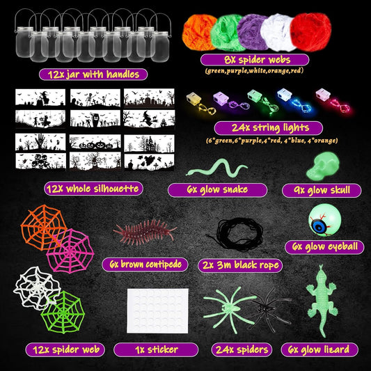 SpringFlower Halloween DIY Arts and Crafts Kits,12 Pcs Glass Mason Jar with Accessories for DIY Lantern Jar, Art & Craft Party Supplies for Classroom Kids