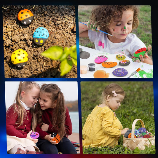 Halobios Rock Painting Kit, 12 Rocks for Painting, Arts and Crafts for Kids Ages 6-12, Rock Painting Kit for Adults, Art Supplies for Birthday Children's Day Gifts