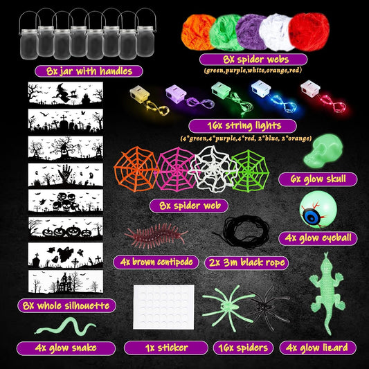 SpringFlower 8 Pack Halloween DIY Arts and Crafts Kits for Kids Ages 6-8, 8-12, Halloween Mason Jar with Accessories for DIY Lantern Jar, Art & Craft Party Supplies for Classroom Kids