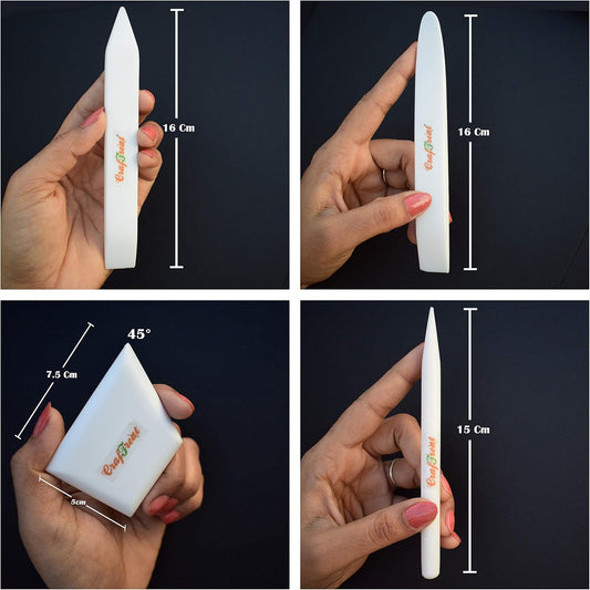 CrafTreat Teflon Bone Folder and Scoring Tool Set - Large, Ergo Square, Lifter and Burnisher - Paper Scorer, Card Folder, Binding Tool, Leather Burnisher - Smooth, Non Stick, Ergonomic Craft Tool