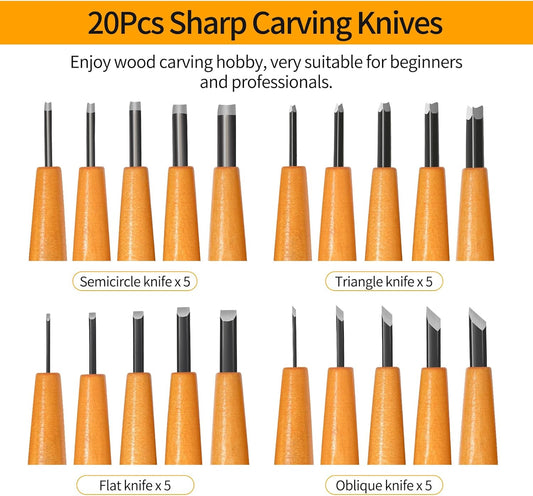 Wood Carving Tools Set - 20 Pcs Wood Carving Knife Set Beginner Whittling Kit with Canvas Case for Adults Children, Carving DIY Wood Carving Kit - Perfect for Beginners and Experts