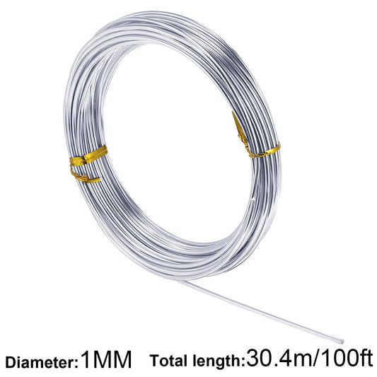 TecUnite Aluminum Craft Wire for Sculpting Bendable Metal Beading Wire for DIY Jewelry Making (1 Roll,Silver,30.4 m x 1 mm)