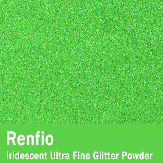 Renfio Iridescent Ultra Fine Glitter Powder Resin Supplies Glitters 1.94 Oz (55g) PET Flake Crafts Sequins 1/128" 0.008" 0.2mm Epoxy Chips Flakes for Tumblers Slime Painting - Light Green