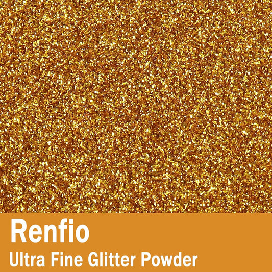 Renfio Ultra Fine Glitter Powder Metallic Resin Glitter 2.11 Oz (60g) PET Flakes Crafts Sequins 1/128" 0.008" 0.2mm Epoxy Chips Flakes for Tumblers Slime Decoration - Deep Gold