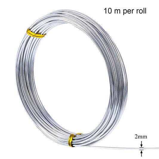 TecUnite Aluminum Craft Wire for Sculpting Armature Bendable Craft Wire for DIY Jewelry Making (2 Rolls,Silver,10 M x 2 mm)