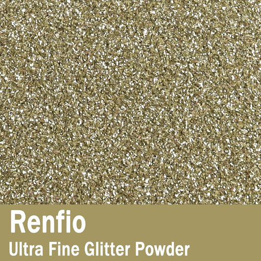 Renfio Ultra Fine Glitter Powder Metallic Resin Glitter 2.11 Oz (60g) PET Flakes Crafts Sequins 1/128" 0.008" 0.2mm Epoxy Chips Flakes for Tumblers Slime Decoration - Light Gold