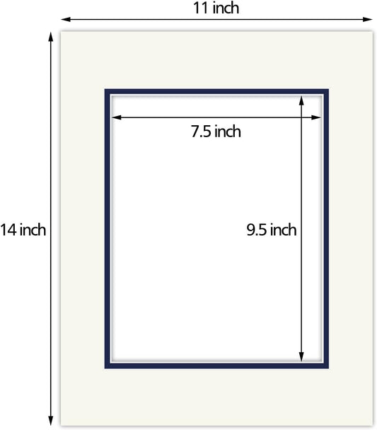 Golden State Art, 11x14 Double Mats for 8x10 - for Photos, Pictures, Frames - Acid-Free, 5 Pack, Ivory Turret Over Dignity Blue