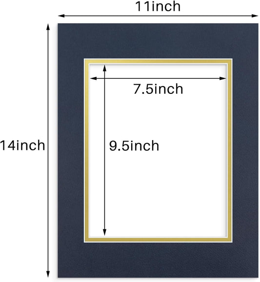 Golden State Art, 11x14 Double Mats for 8x10 - for Photos, Pictures, Frames - Acid-Free, 5 Pack, Dignity Blue Over Old Gold