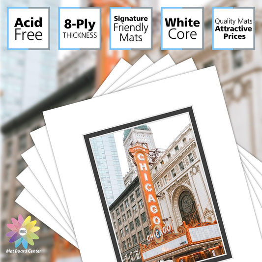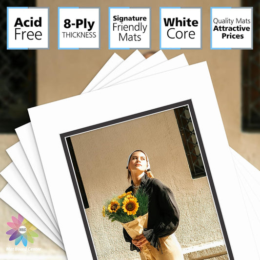 Mat Board Center, Double Mat - Acid Free, 8-ply Thickness, White Core - for Pictures, Photos, Framing (White Over Black, 11x14 for 8.5x11, Pack of 5)