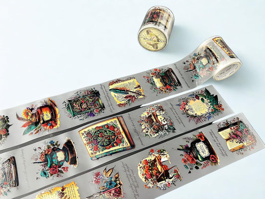 Victorian Scribe Transparent Washi Tape 4.5 x 5 cm – Clear Washi Decorative Adhesive Roll for Scrapbooking, Journaling, DIY Crafts, Planners, Bullet Journal, Card Making, Stationery Supplies