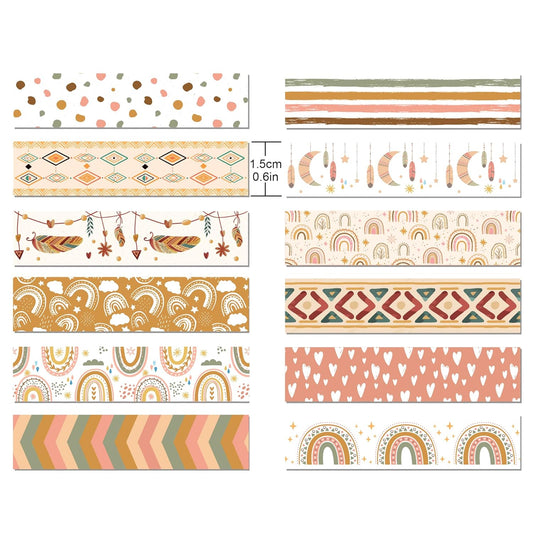 12 Rolls Washi Tape Boho Washi Tape Set Vintage Rainbow Sun Stars Masking Tapes Decorative Paper Stickers Decorative Tapes for DIY Art Crafts Wrapping Decor Junk Journal Scrapbooking Gifts Stickers