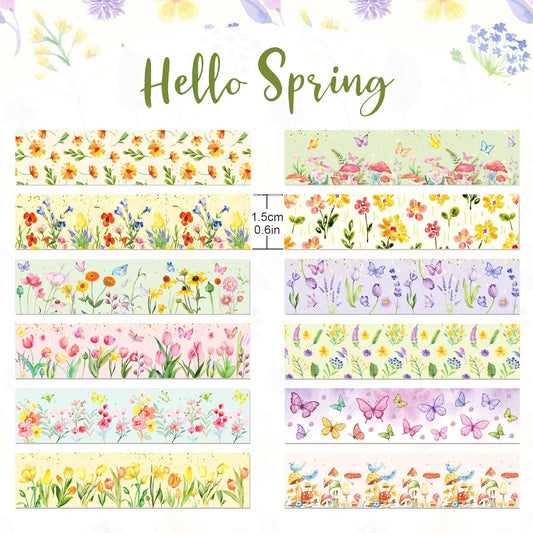 Adirasenotek Floral Washi Tape Set 12 Rolls,Flower Butterfly Washi Tape Decorative Paper Stickers Decorative Tape,DIY Art Crafts Wrapping Decor for Gifts Wrapping