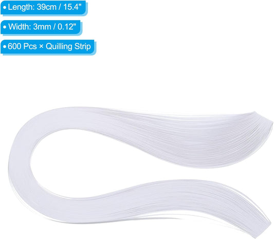 PATIKIL 600pcs Quilling Strips Paper 1/8"(3mm) 39cm Origami Paper Quilling Strip for Art DIY Hand Craft Christmas, White