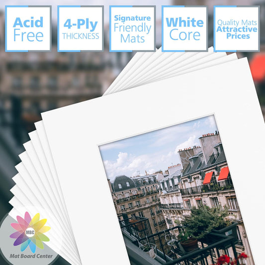 Mat Board Center, Pack of 10, 11x14 for 8x10 Rock Garden Color Mats - Acid Free, 4-ply Thickness, White Core - for Pictures, Photos, Framing