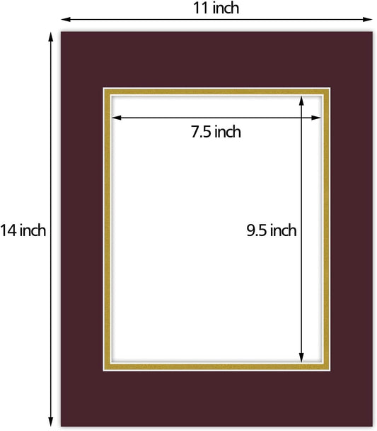 Golden State Art, 11x14 Double Mats for 8x10 - for Photos, Pictures, Frames - Acid-Free, 5 Pack, Maroon Over Old Gold