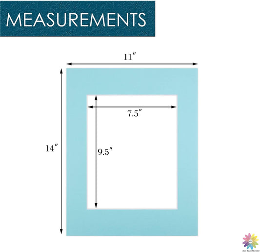 Mat Board Center, Pack of 10, 11x14 for 8x10 Dignity Blue Color Mats - Bevel Cut, Acid Free, 4-ply Thickness, White Core - for Pictures, Photos, Framing