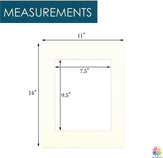 Mat Board Center, Pack of 10, 11x14 for 8x10 Ivory Color Mats - Bevel Cut, Acid Free, 4-ply Thickness, White Core - for Pictures, Photos, Framing