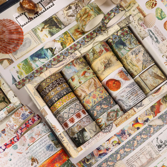 Vintage Washi Tape Set - 24 Rolls Arts Adhesive Tapes Assorted Retro Decorative Masking Tape Sets for Craft, Kids, Scrapbook, DIY, Gift Wrapping (8-Sea Treasures)