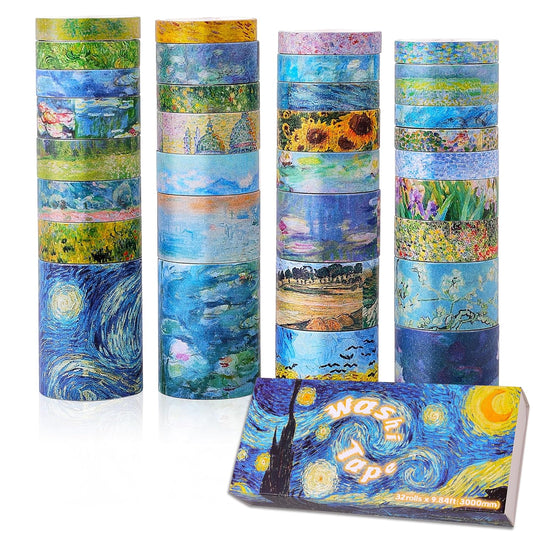 emmoolife 32 Rolls Washi Tape Set, Oil Painting Decorative Masking Tape, Van Gogh Adhesive Tape for Bullet Journal, DIY Crafts Gift, Party Decorations, Junk Journal, School Supplies