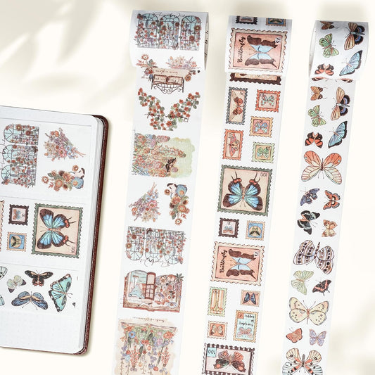 42 Rolls Vintage Washi Tape Set, Delicate Butterfly & Lush Floral Botanical Themed Writable Decorative Tapes with Retro Elements for Scrapbooking, Junk Journal Supplies, Bullet Journaling 5-25mm Wide