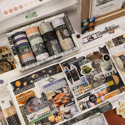 Vintage Washi Tape Set - 24 Rolls Arts Adhesive Tapes Assorted Retro Decorative Masking Tape Sets for Craft, Kids, Scrapbook, DIY, Gift Wrapping (11-Celestial Dreams)