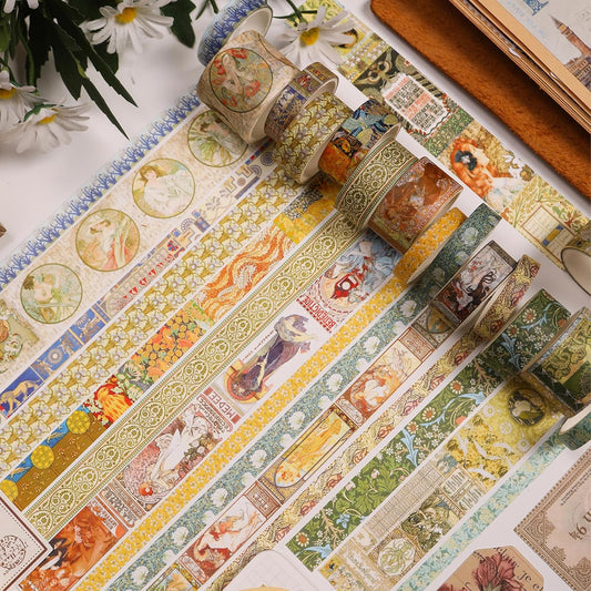 Vintage Washi Tape Set - 24 Rolls Arts Adhesive Tapes Assorted Retro Decorative Masking Tape Sets for Craft, Kids, Scrapbook, DIY, Gift Wrapping (1-Renaissance Dreams)