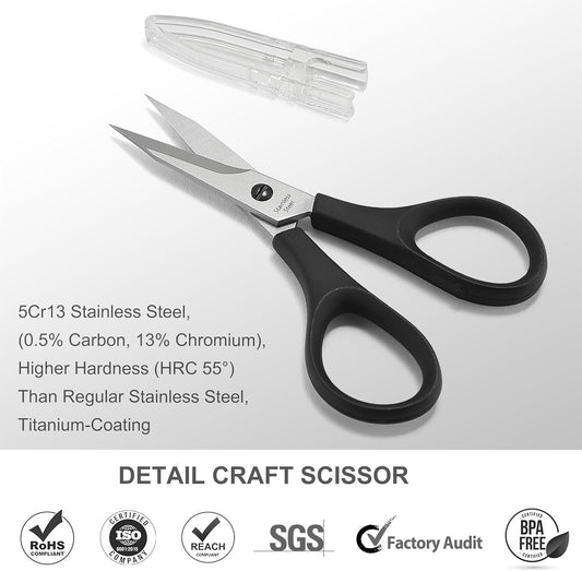 PAFASON Sharpest & Precise Stainless Steel Curved Straight Thread Yarn Fabric Cutting Scissor with Safety Cap & TSA Complied Ideal for Embroidery Quilting Sewing Knitting Crafting Cross Stitch Crochet