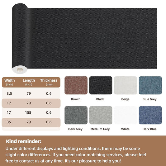 Suede Repair Patch, 17X79 Inch Fabric Large Repair Tape, Self-Adhesive Patches for Furniture, Sofa, Car Interior, Shoes, Hand Bag, Clothing (Black, 3.5X79 Inch)