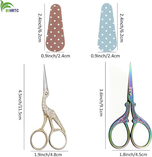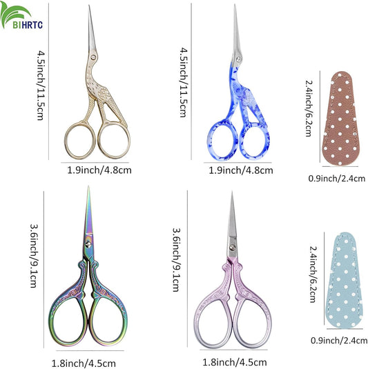 BIHRTC 4Pairs 3.6inch Embroidery Scissors with Leather Cover Stainless Steel Sharp Stork Threading Shears Needlepoint Scissors for Sewing Crafting Art Work Needlework Knitting