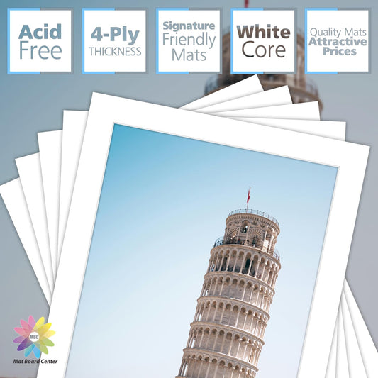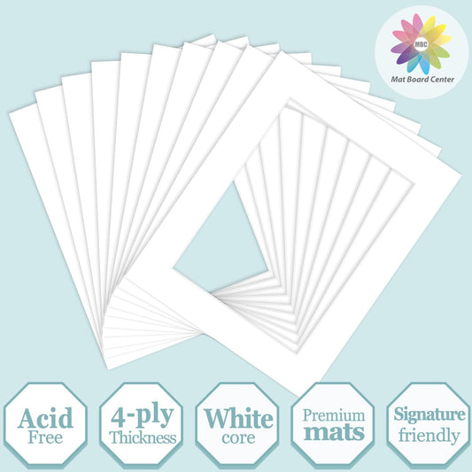 MBC MAT BOARD CENTER, 10 Pack 16x20 for 11x17 White Picture Mats Frame Mattes, Bevel Cut, Acid Free, 4-ply Thickness